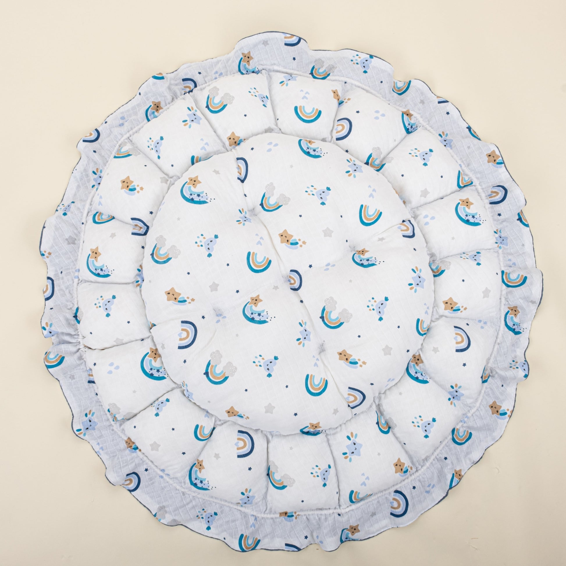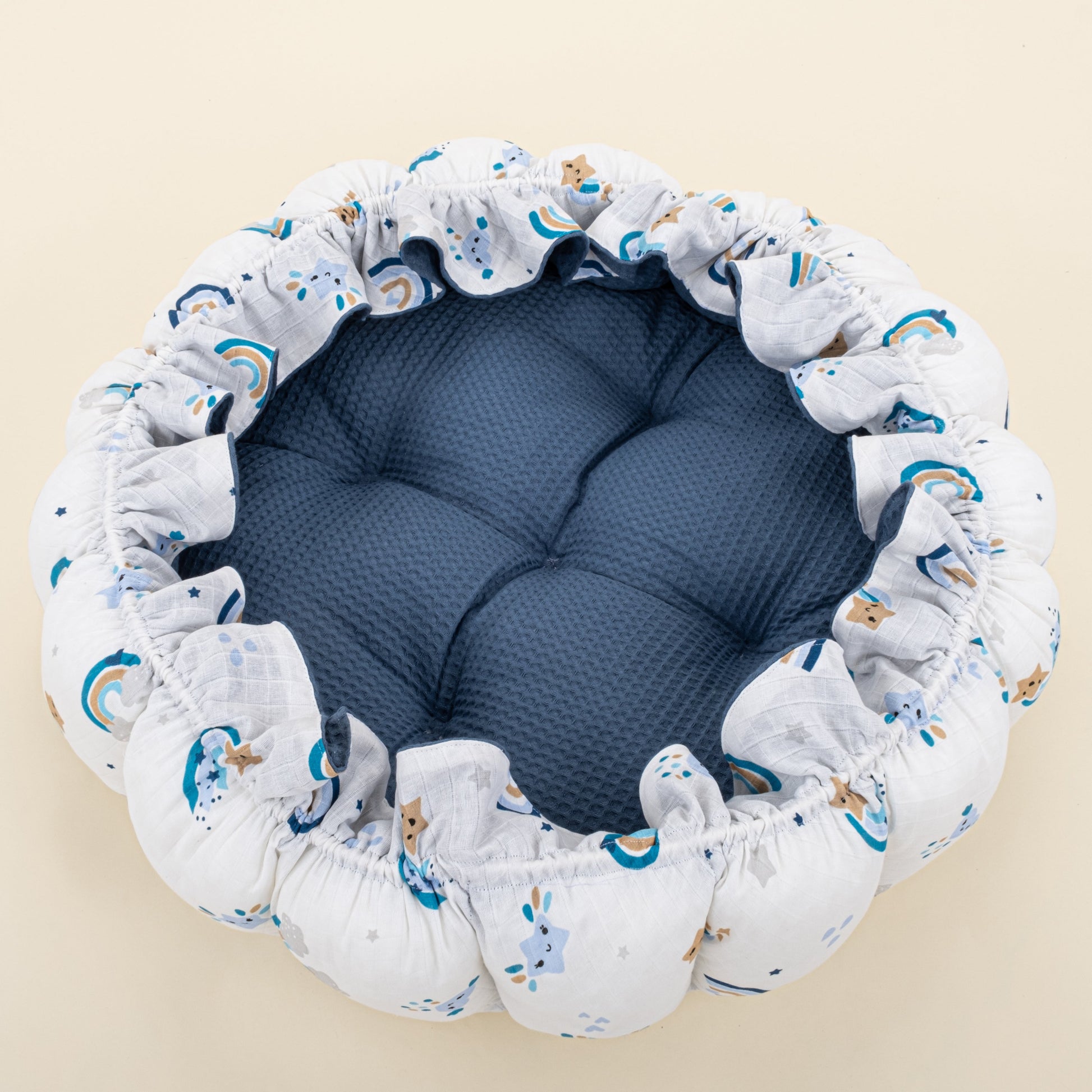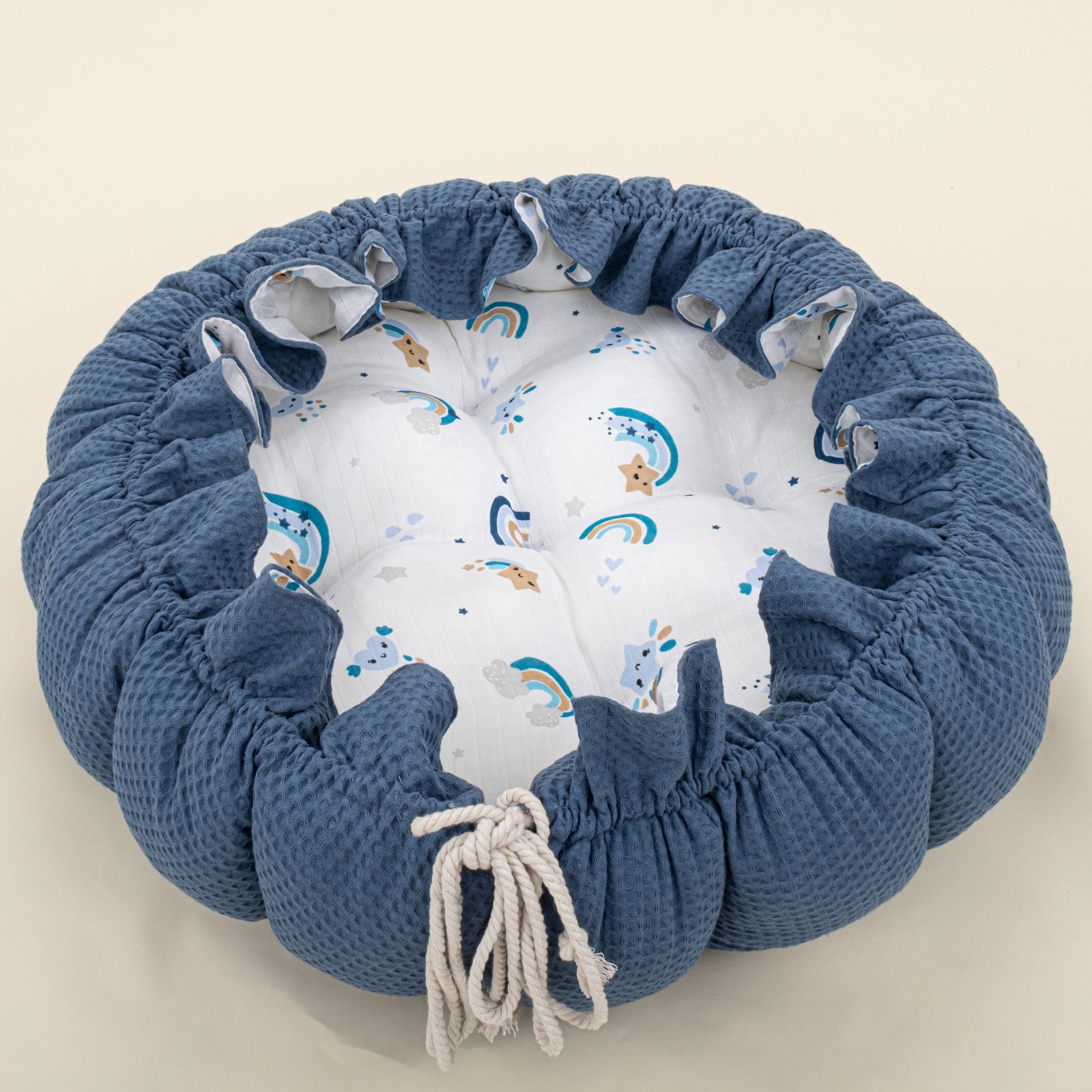 Round Babynest - Çift Taraflı - İndigo Petek - Mavi Gökkuşağı